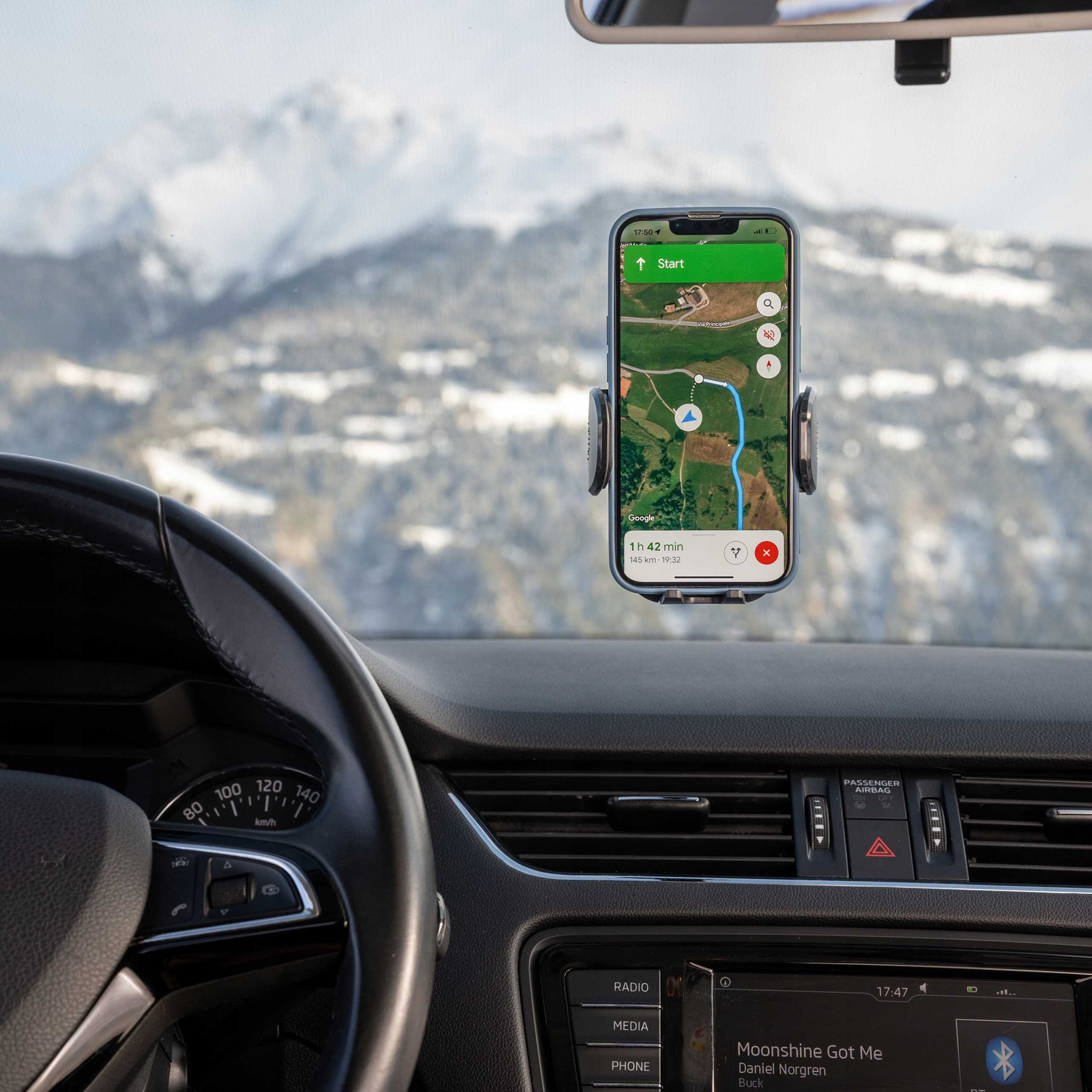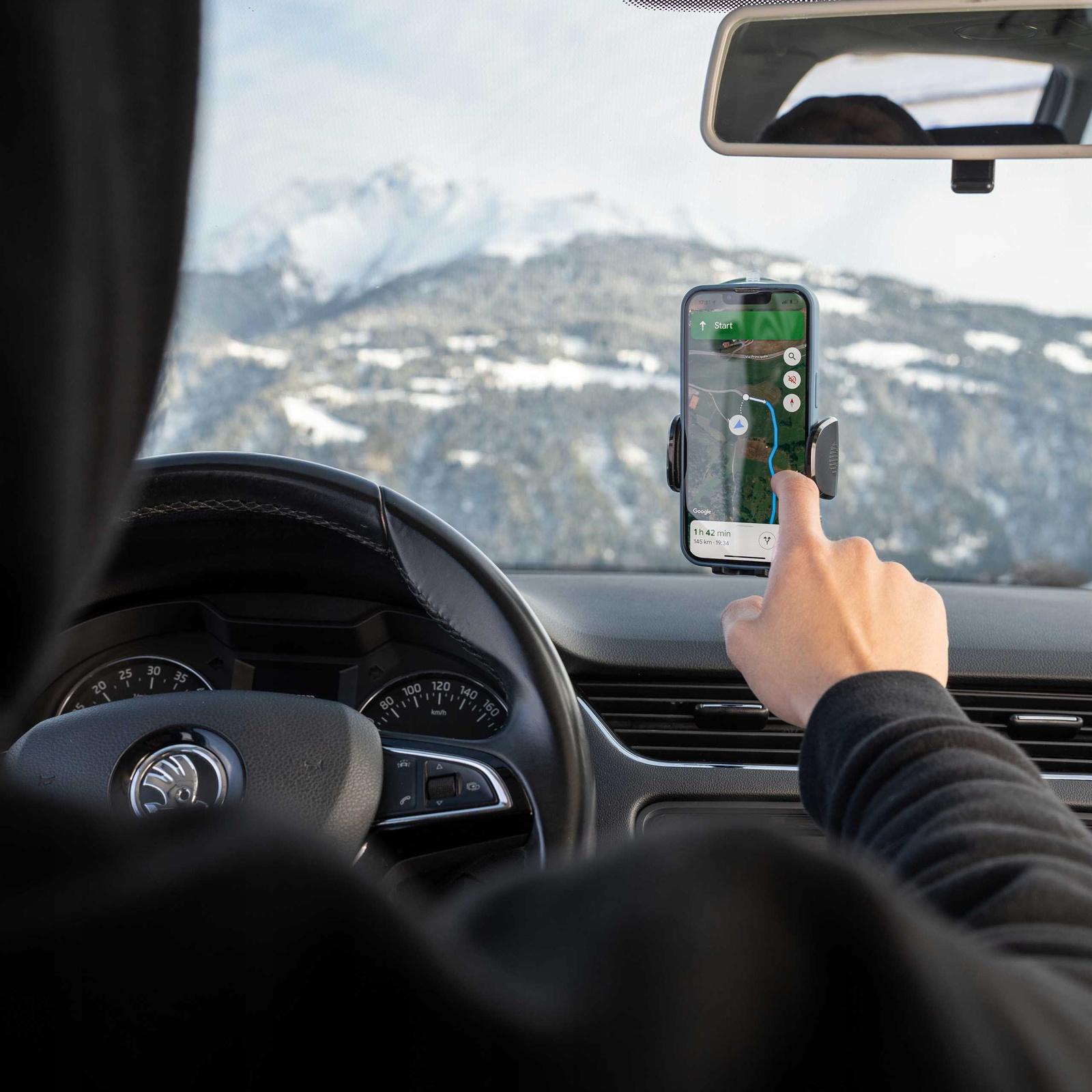 - Łatwy i trwały montaż. Uchwyt jest bardzo prosty w montażu na desce rozdzielczej, szybie i innych elementach kokpitu. Posiada dodatkowy przycisk u jego podstawy, który dociska przyssawkę na całej powierzchni zapobiegając oderwaniu się uchwytu;