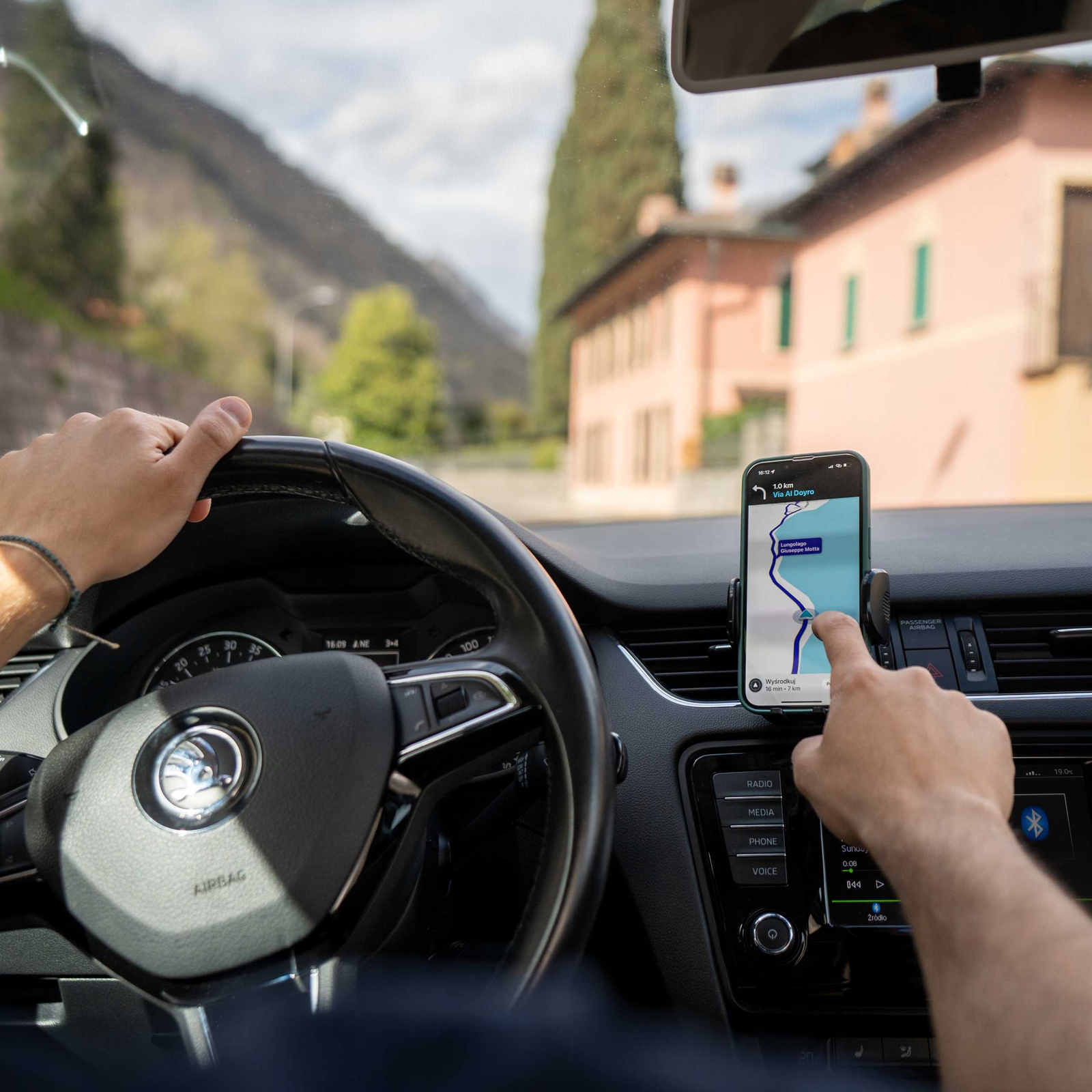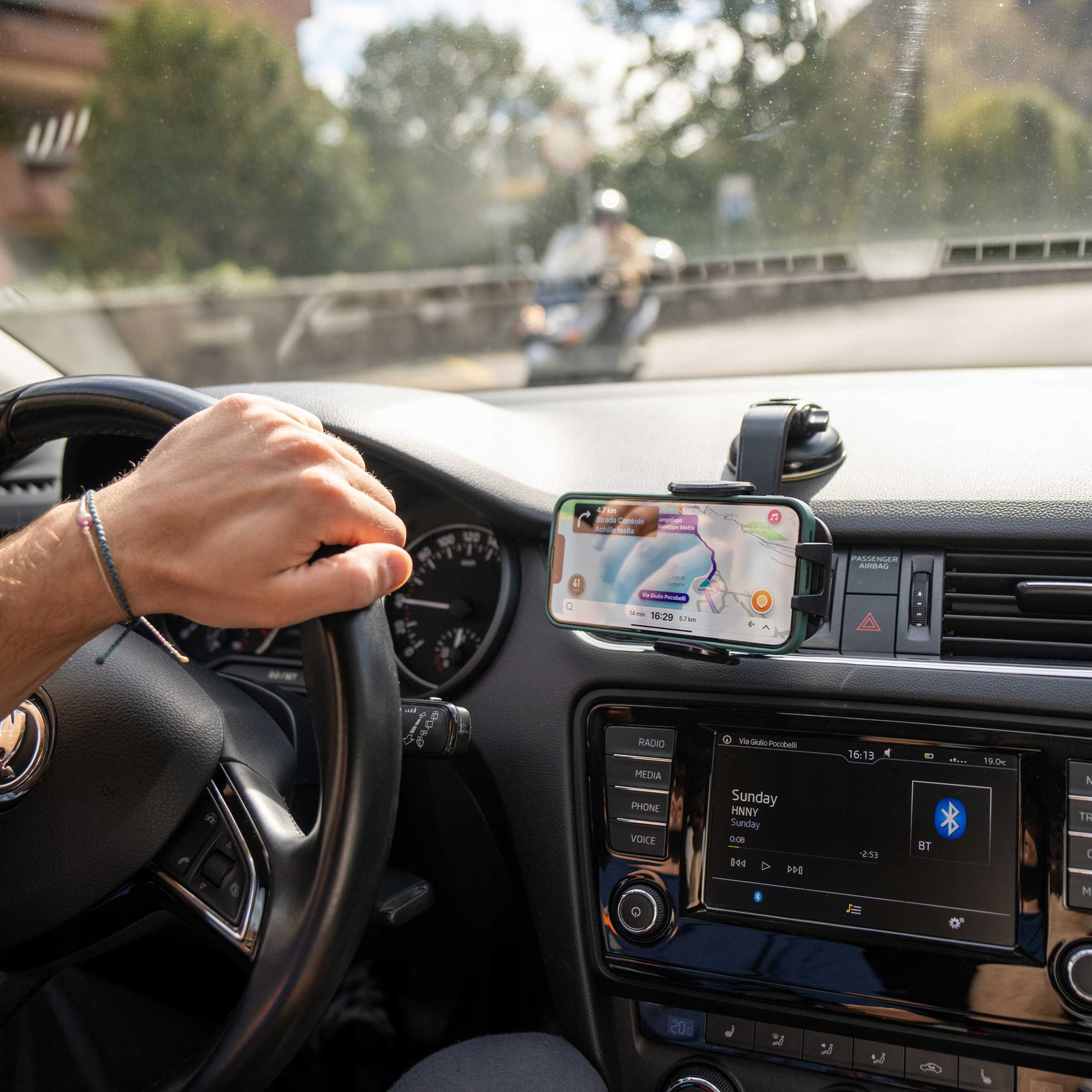 • Łatwy i trwały montaż. Uchwyt jest bardzo prosty w montażu na desce rozdzielczej. Dodatkowy klips u podstawy dociska przyssawkę na całej powierzchni zapobiegając oderwaniu się uchwytu;
