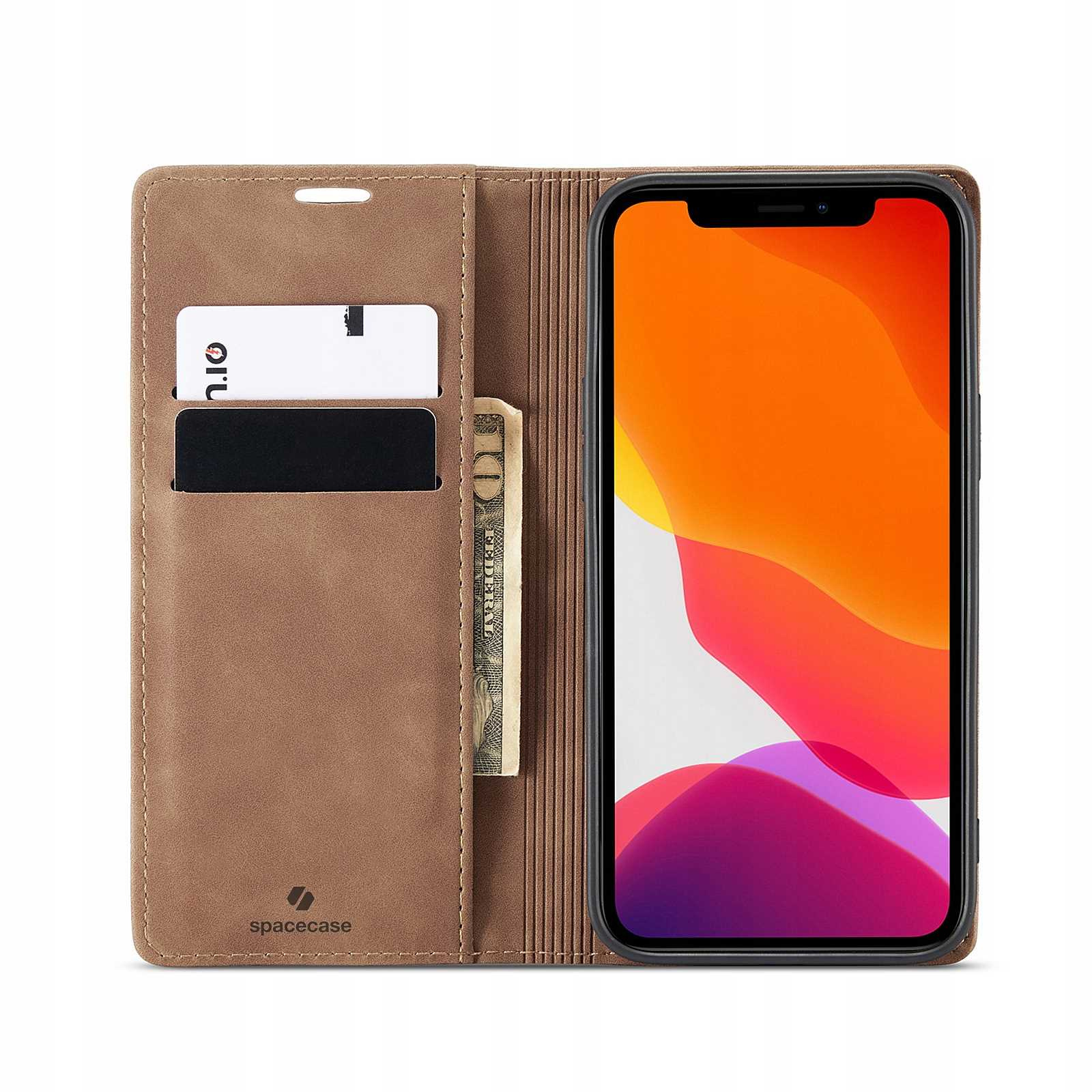 - Przydatne kieszonki. Pokrowiec posiada kieszonki na karty lub dokumenty oraz dodatkową kieszonkę na gotówkę.