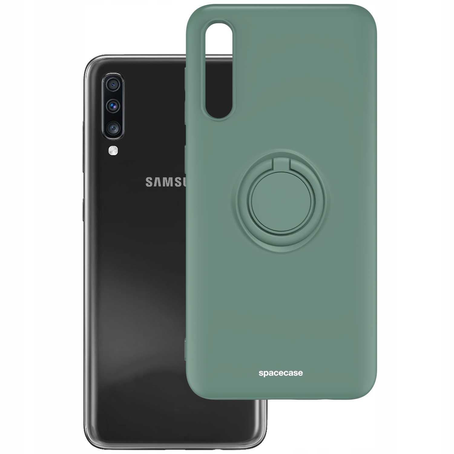 Etui Spacecase Silicone Ring do Galaxy A70 ciemno zielone