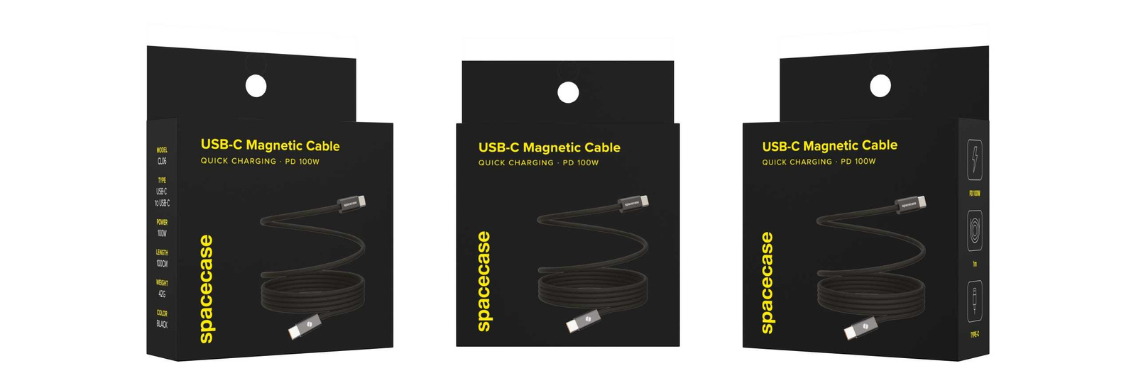 Spacecase USB-C to USB-C Magnetic Cable 1M 100W CL06 blac