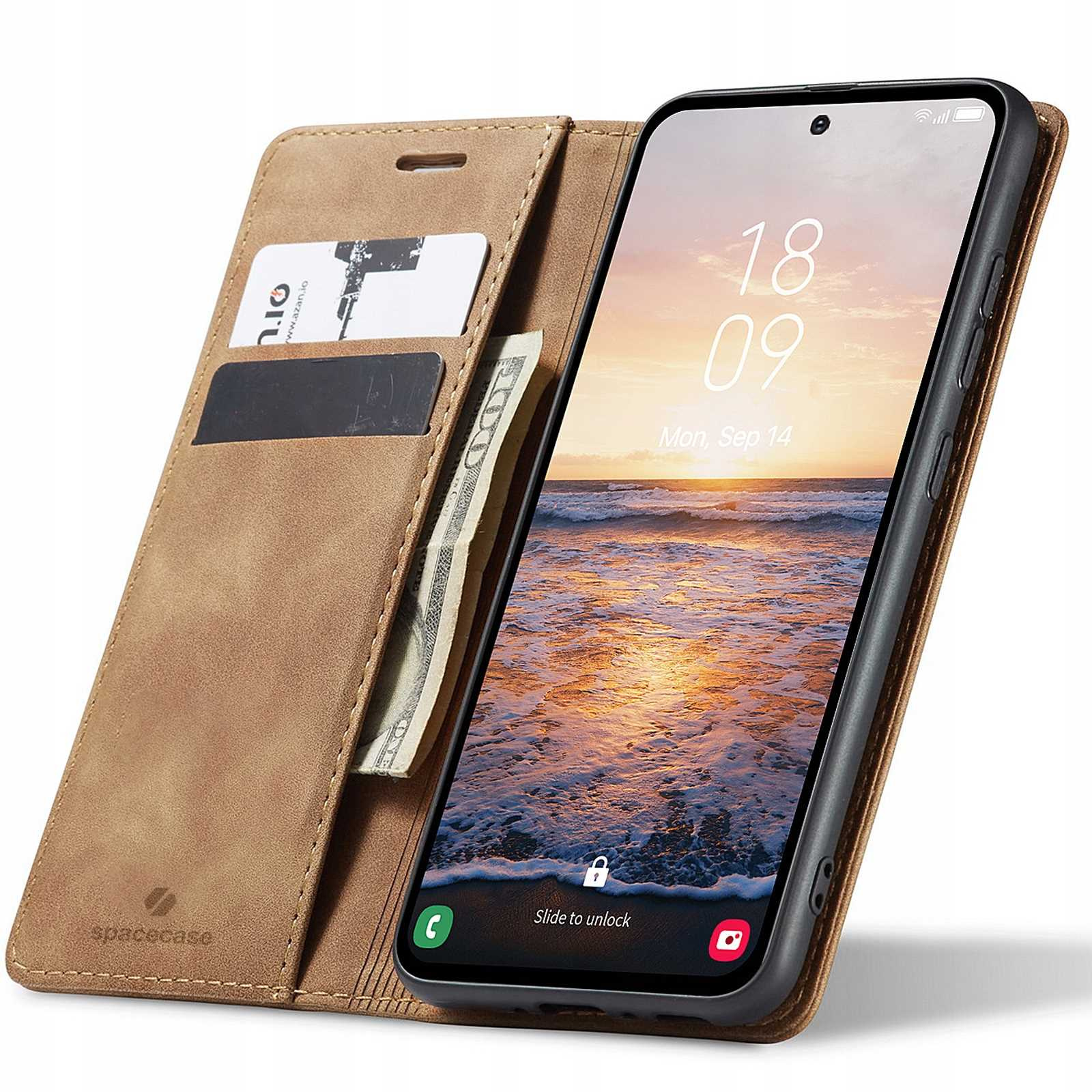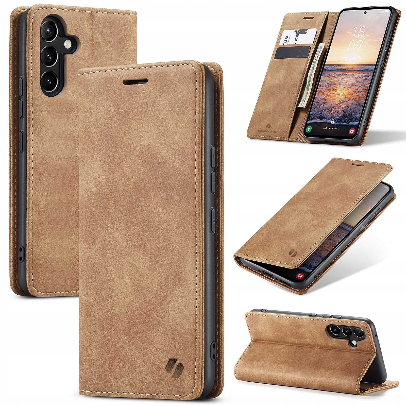 Etui z klapką Spacecase Wallet do Galaxy A54 5G jasno brązowe