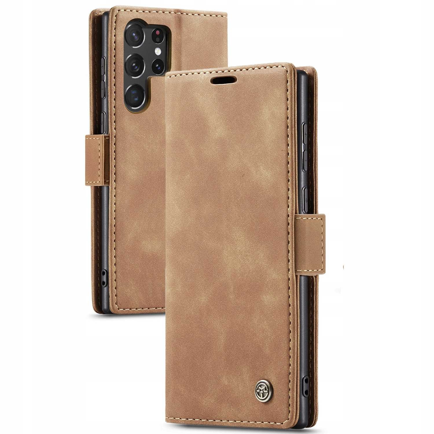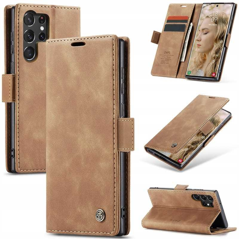 Etui z klapką Spacecase Wallet do Galaxy S23 Ultra jasno brązowe
